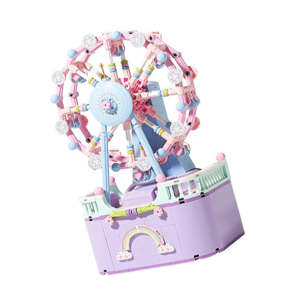 Hay un juego de construcción giratorio en la parte inferior del juguete de bloque de construcción de rueda de ferris. 710 bloques.